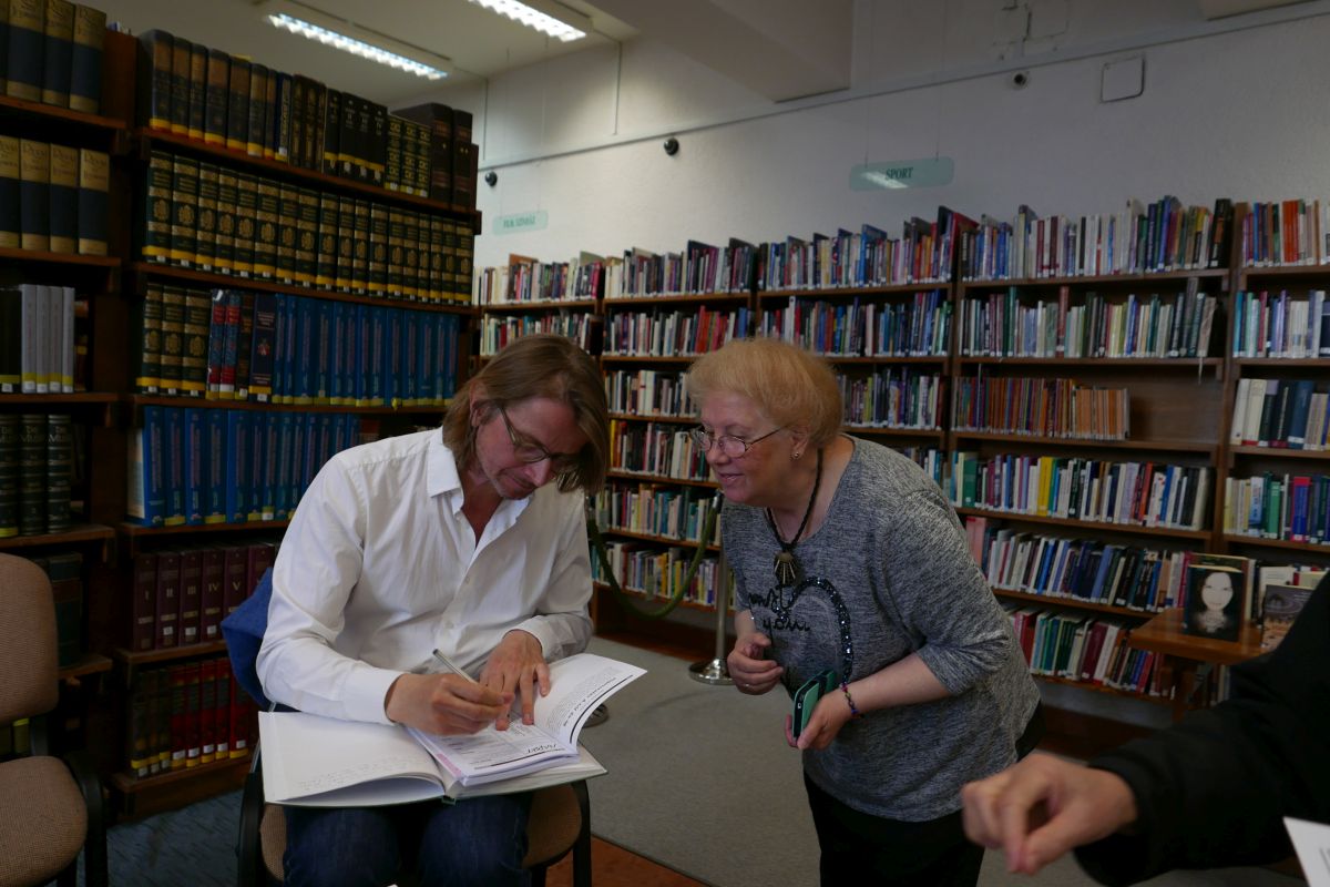MARTA HUKE norvég költő, és Tor Eystein Overas író, kritikus a Pest Megyei Könyvtárban, Szentendre