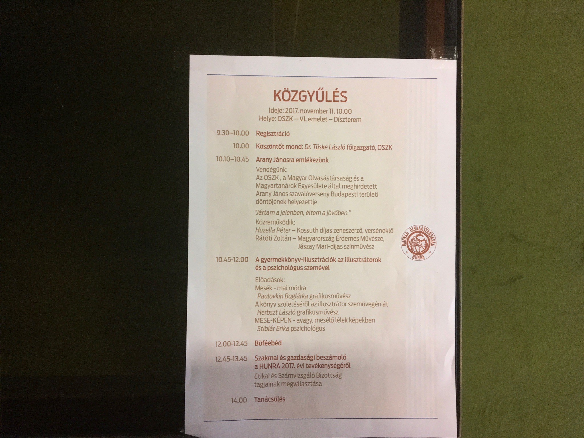 Magyar Olvasástársaság - HunraHUNRA Közgyűlés - 2017. 11. 11. - Budapest, OSZK Díszterem