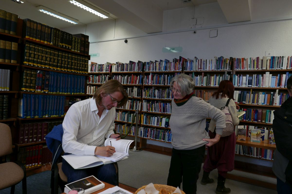 MARTA HUKE norvég költő, és Tor Eystein Overas író, kritikus a Pest Megyei Könyvtárban, Szentendre